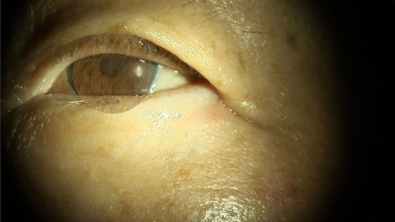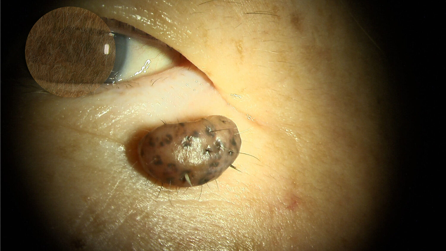 下眼瞼にあった母斑(ほくろ)を切除により除去しました。