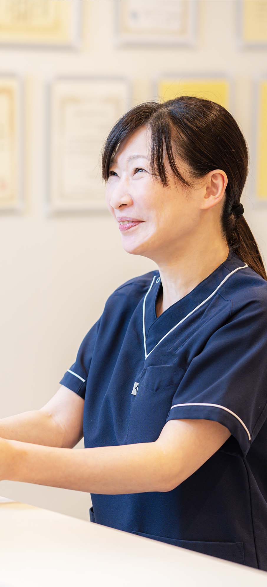 オープニングスタッフなので人間関係もフラットだと思ったし、機械も最新であることに惹かれました。ホームページに書いてあった「四方よし」という文章を見ていいなと思ったのもきっかけです。応募しても年齢ではじかれるかもと心配していました。あと、院長紹介の文章がずらっとならんでいたので、先生が厳しいかもと思っていました。