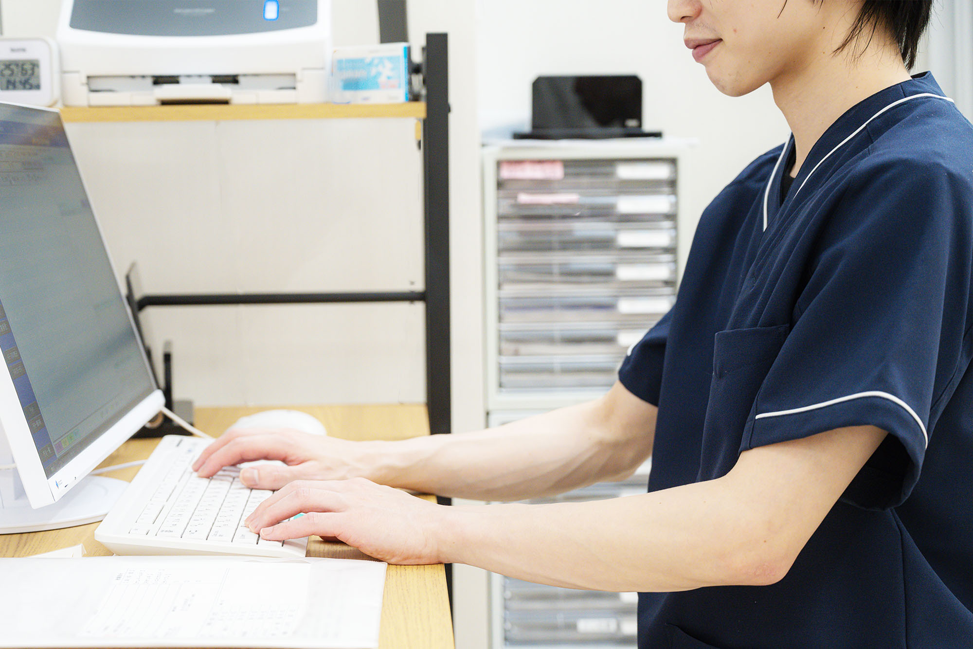 まず基本的には受付を担当していただきます。当院の受付マネージャーから1対1で受付(保険証入力、マイナンバー確認)~会計~予約をマスターしていただくことになります。入職後3冊のマニュアル(医療事務・検査・手術)をお渡ししますので、それを読みながらすこしずつ知識を増やしていってください。この期間はパートタイム(時給制)です。入職前から入職2週間までは有休消化中の兼務が可能なので、そのようにしたい方はご相談くださいませ。