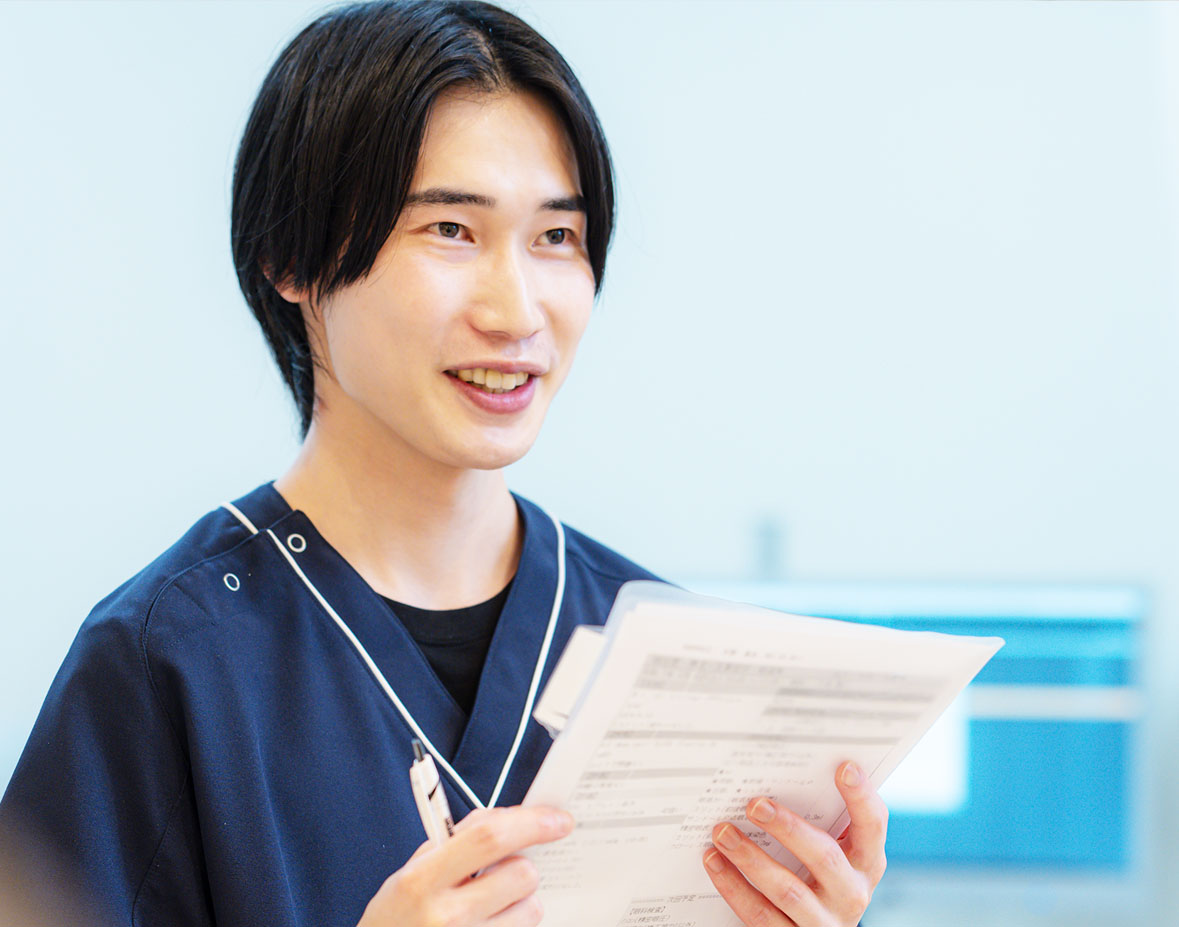以前の業務はノンコン視力OCT散瞳ばかりでした。今は患者層にバラエティがあり、検査や処方などの業務、それ以外にも眼内レンズ度数決定や手術準備、外回り、ホームページの症例提示の執筆などを幅広く担当しています。